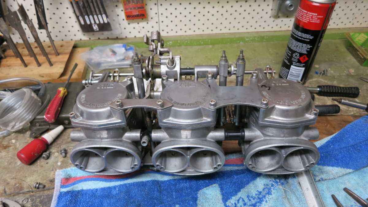 The carbies are back on the bike although I still have some sorting out to do as she is kicking over but won't start. The problem with the starter solenoid getting hot is not an issue now and the motor turns easily.
