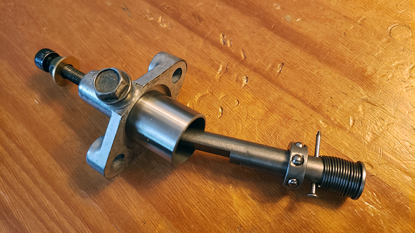 Before assembly. The pre-loaded spring is held with a nail.