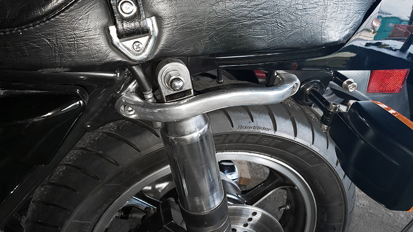 I was going to make my own passenger grab rail, but still without a good pipe bending gadget and no welding machine, I just gave in and ordered it from the UK. From John, who was suggested a few months ago as a good fabricator who has been specializing in making them. It will be a useful addition, especially for the passenger to have something to hold on to - just in case. The seat is quite slick, and I understand the worry of sliding back. The grab rail will also look good on the bike.