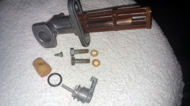 In the meantime, I took apart and cleaned the fuel cap. It was all plugged with rusty dry mud. Now all clean ready to assemble. Here a picture of what it looks like dismantled.