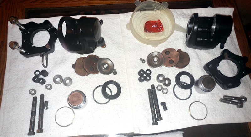 The front calipers were very dirty, inside out. The first thing I did was to remove as much dirt as I can, then spray it with a brake cleaner.