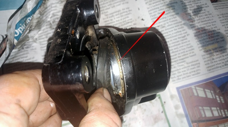 Unfortunately, the ring holding the dust seal, didn't stay firm inside (here before cleaning just to show which one this is)