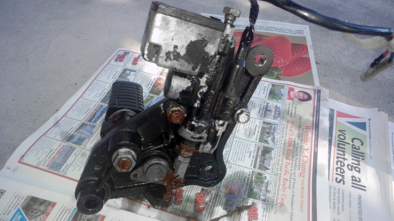 I chrome plated some components of this assembly so they are well protected. Everything had been ultrasonically cleaned, soda blasted and pained black and clear coated. I used a bunch of very fine sand papers to wet smooth the cylinder bore. The last one was 2000. I used the old seal kit after cleaning, as it was in a good shape. It worked even when everything looked like caca, inside and out, when I purchased the bike (see the photos).