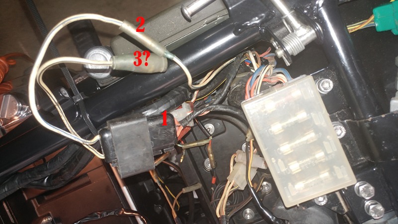 The front - I have an idea but need opinion about hooking up the turn signals. The headlight is #3, the rest I think the signals. Except the '?' which I don't know what it is, but I suspect it goes to a fairing with extra goodies. Front signals have 3 wires - 2 +1 ground. Here, #4 and #5 would make sense + the #1 as supposed ground, but both 5 and 1 have the same color pattern, confusing me.