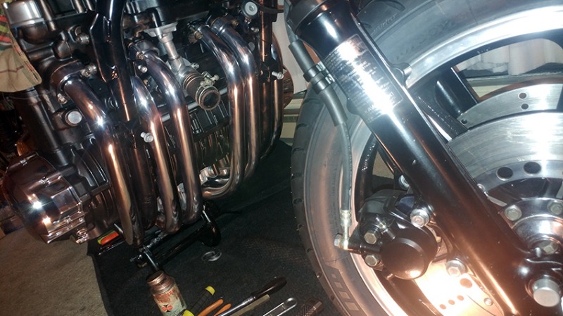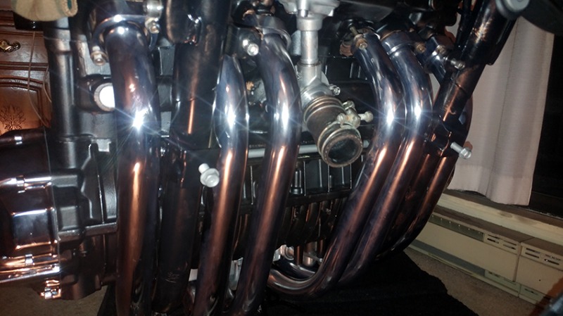 The exhaust collector got painted with PJ1 high temperature exhaust paint. First, I sand blasted it, then applied POR-15 metal solution to get rid of any residue rust and apply an etching coat of zinc rich layer. Rinsed and dried, the PJ1 spray paint applied.