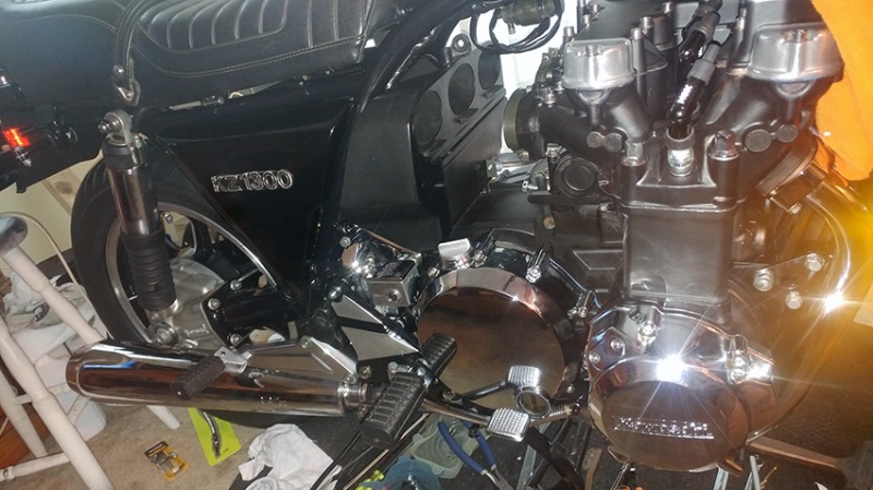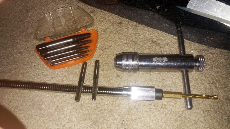 Another small progress. I totally forgot one of the bolts mounting a muffler guard next to the collector broke off. I installed all the pipes and forgot about it!!! No way I wanted to remove all the pipes and the muffler again... So, I used a flex extension - not enough clearance between this and the ground to use a drill. Drilled it out, and got stuck - those extractors pictured in the photo don't work well one small with a little tolerance extractions. So, I wiggled the drill bit around to remove more material, and when enough taken out, I used a sharply ended thread cutting tap to chase the existing thread. The space is limited, so I ground another tap's top flat so it could go deeper cutting adequate diameter thread deeper. All good and done!