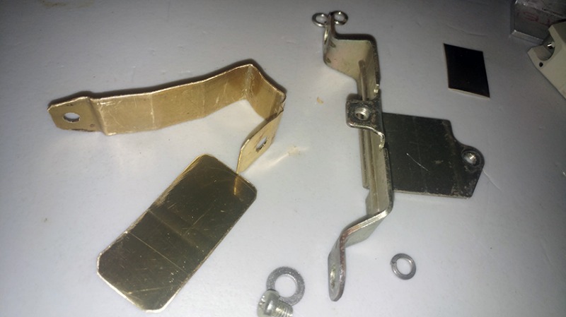 A plate insert to protect the back screw from hitting the top resistor and cracking it. It also applies extra tension, acting like a spring in particular to the middle resistor.
