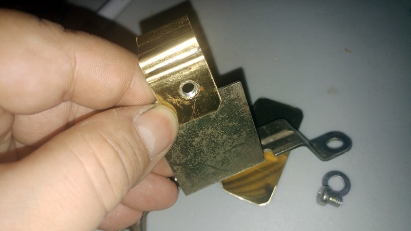 Without any proper bench set up, to fabricate something beautiful as I used to, I just pulled out a small sheet of brass I brought with me from Japan and used scrap metal pieces and a hammer to fabricate this bracket. A bit tricky on my lap, but holds the resistors tight and beautiful.