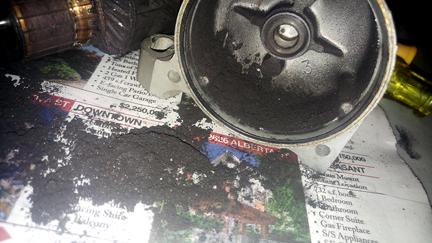 What I did was first unscrew and clean all ground connection - cables plus any frame and crank case points. Then checked the solenoid. When all was eliminated, the only thing left was the starter. After removal and opening it, this is what I found - unbelievable accumulation of carbon dust and whatever dirt particles which made their way inside. After cleaning everything and installing new brushes, a $12 investment, this starter is like new and cranks like a champ. So, back to the main reason why I am posting this, it's a reminder that on the old bikes it is a good idea to remove and service the starter - quite a straight forward thing to do. Anyone who would like to see the KZ1300 starter I rebuild few moths ago, with pictures, it's somewhere within the pages of this thread. It wasn't as dirty as this one, but being a wreck sitting in all weather for years, had a lot of rust residue.