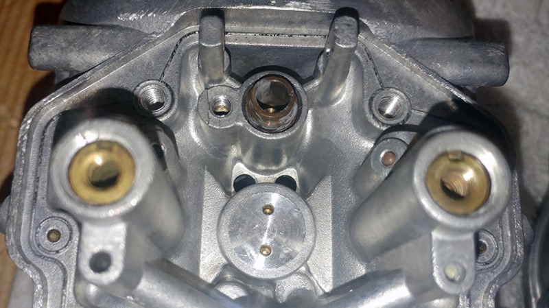 I am wondering ahead about the floats. You got the brass ones I think. When taking the carbs apart I remember two floats bouncing back when lifted, but one not, just falling. So something is going on there. I think that's the one sitting next to the 'solid' jet.