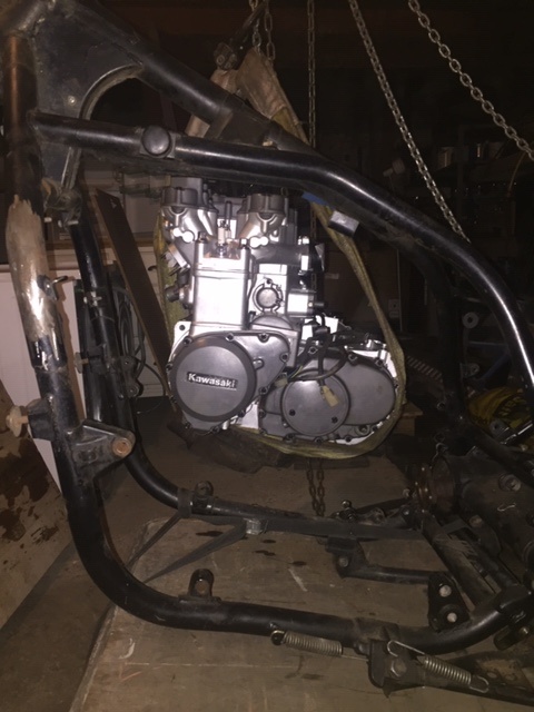 It depends... if there is enough room to cut and weld with the engine in, it will stay in. If not, then it will have to come out again for the frame amendments, and then go back in to build the bike up. Need to have the engine in to determine stance, fork length, ride height, exhaust routing etc etc.