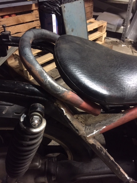 I was going to try and use the old 'double-walled' sections, but I don't think that will work. If I go that way I think I'll build new ones on both sides. Then at least I know I have all new, strong metal and exactly where I want it/where it is needed. I was thinking of a half moon shape to extend from 2-3 inches underneath where the new tube meets the old to 2-3 inches above where the new shock mount goes, just before the frame rails bend to form a hoop behind the seat.