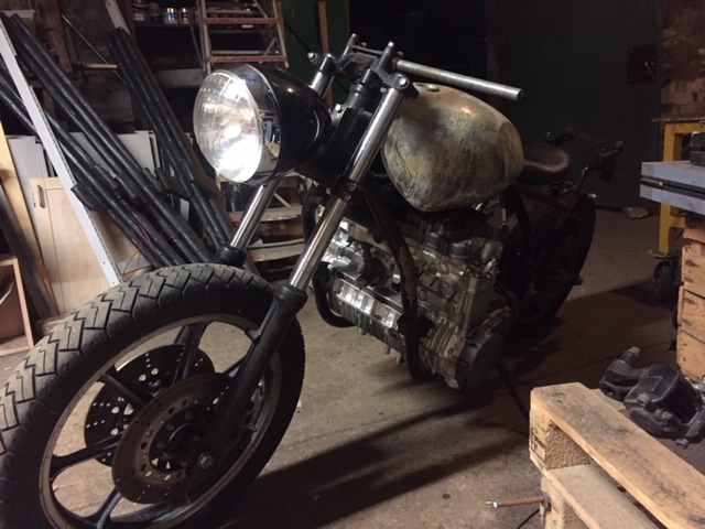 On the headlight I have decided to await my new forks and see what the situation is then. These will be 58cm dia so will stick out a little more. Then I'll get the clip-on handlebars and decide whether I'll mount the light with one bottom bracket to the frame (non turning light) or two side brackets to the forks (turning light).