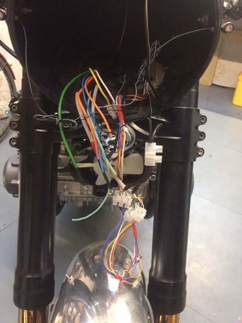 Then I discovered that the speedo needed two more wires from the back to the front of the bike, so I undid all the heat shrink, pulled two more lines through, heat shrink again... ran out of heat shrink... UGH! Gotta wait until more is delivered.