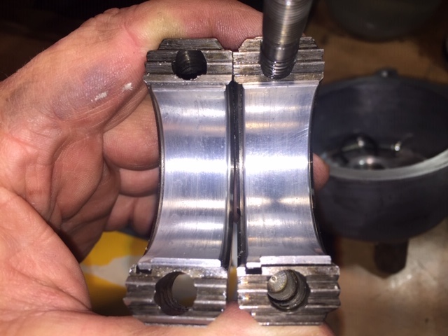 They look fine. The Babbitt that is on the shells can vary in thickness but generally speaking is around .010" thick If there's a problem Like low oil flow, the Babbitt can melt and you're left with bare spots on the bearings shells (which generally are copper) If the oil was contaminated with particles which made it through the filter if the filter got plugged and went into bypass mode, you would find particles embedded in the Babbitt and scoring on the journals. So things to look for are the particles or bare spots on the bearing shells revealing the copper (or sometimes aluminum)