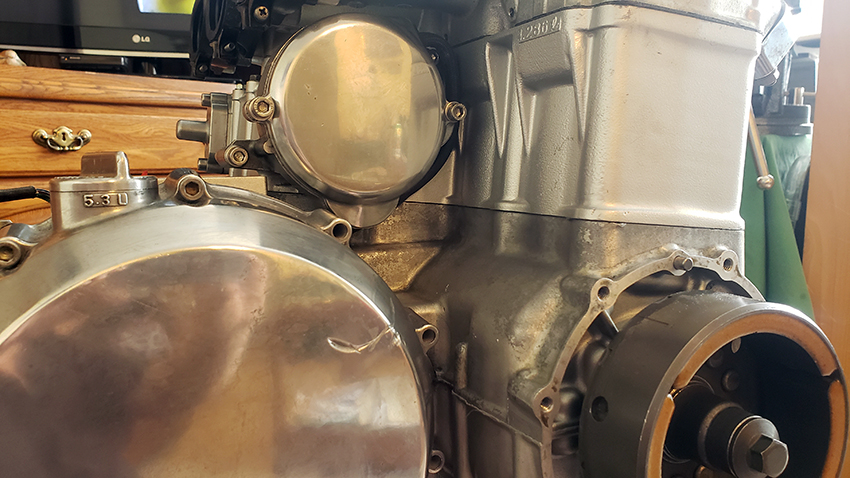The right hand engine cover missing - because I decided to chrome it after all, and just came back from the shop. It will be ready in 2 weeks. And a good thing these days, all done safely dealing with one person only and at a distance. But whom am I kidding. Construction workers risk their lives mingling with coworkers and tenants, engineers etc. every day.