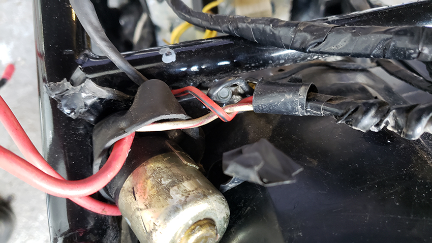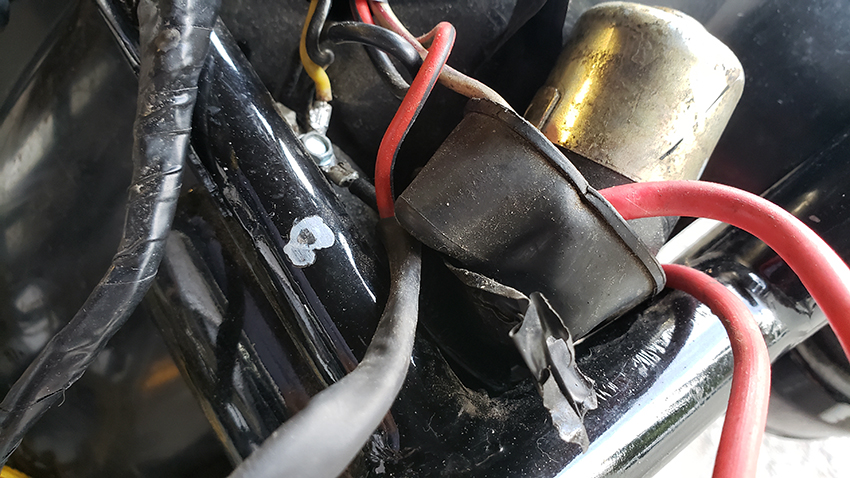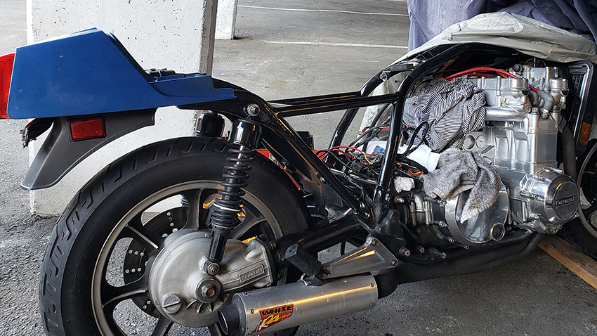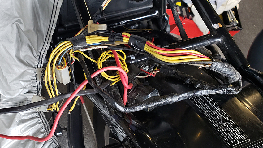 The ground and positive to the battery (there is a really small one cramped into the modified rear cowl) were extended. In quite a horrible way. There will be lots of work bringing the harness to what it should be. No wonder the bike had some cranking, especially when hot, problems! And who knows what the starter looks like inside. Judging by the state of other components, how 'half-assed' they were put together and maintained, everything has to be checked to eliminate any compound negative effect on how the bike ran.