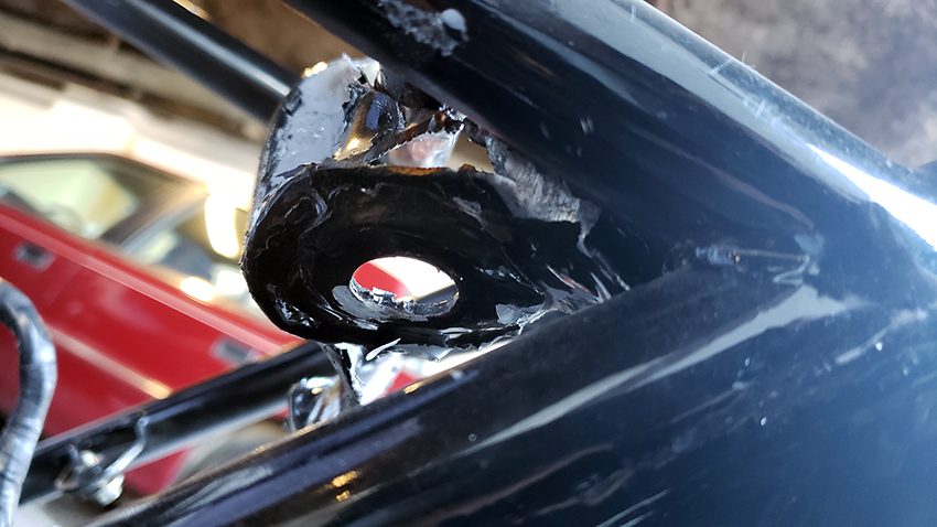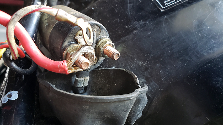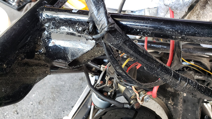 The solenoid out ready to be disconnected, time for the fortified welded tube containing the ignition switch.