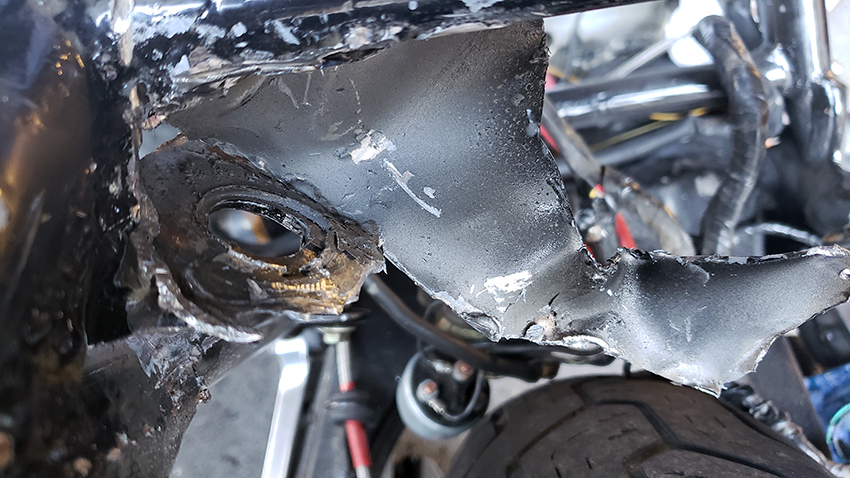 Getting right to the project, the photos describe very well what I am facing. The photo below shows a big, literally central, part of it - a see through void with ALL the mounting brackets missing! The rear turn signal brackets were cut off as well. This is the biggest obstacle so far - fabricating or getting those brackets from someone who himself is customizing their bike and doesn't need them. I've already talked to Paul and might be getting some bits from him as he progresses with work on his bike. But if anyone any of has those handy - please don't throw them in a bin! I'll take them and give them a new life welded to this bike. Thank you in advance.