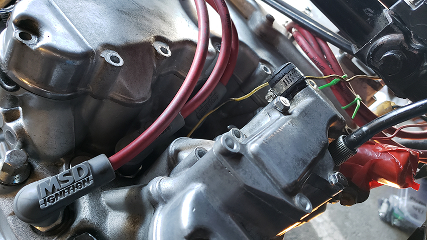 Next is the cam cover. But first a few photos of what I can see there. The vacuum valve is removed, and there is an aftermarket ignition coils block installed. It says MSD - I know the name, but no idea about this particular one used. Anyone with ideas?