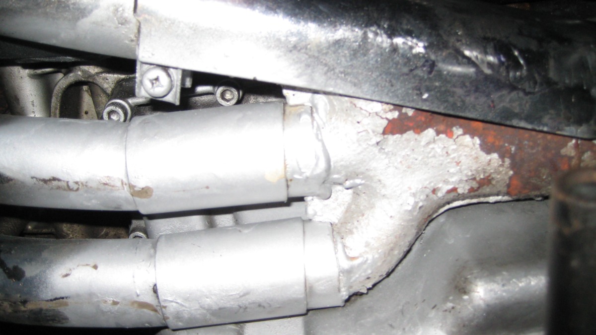 Finally got the big old Z up and running again. Replacing the valve stem oil seals has cured the excessive oil burning, so no billowing smoke on start up. I had a problem getting the thermostat housing to seal, took me four attempts, a new gasket and several applications of sealant before I got it watertight. I Discovered that if you bung up the bottom hose with the cap from a T-cut bottle and fix a bit of plastic pipe to the top hose, you can fill the system with water and test for leaks without fitting the radiator. The repair I did to the exhaust is holding up well with no sign of leaking, so I’m going to call that a success - see photo- my repair lasted better than the exhaust paint I applied. Cleaned the carbs and set the needles to three and a half turns out, which if probably a bit rich but I will do a final adjustment on them later when give the cylinder head nuts a final check for torque. I also reverted back to a cable clutch, the hydraulic conversion worked well to start with but as time went on I felt it wasn’t fully disengaging, giving me clunky gear changes and difficulty finding neutral when stationary. Overall I’m pleased with how it’s turned out.