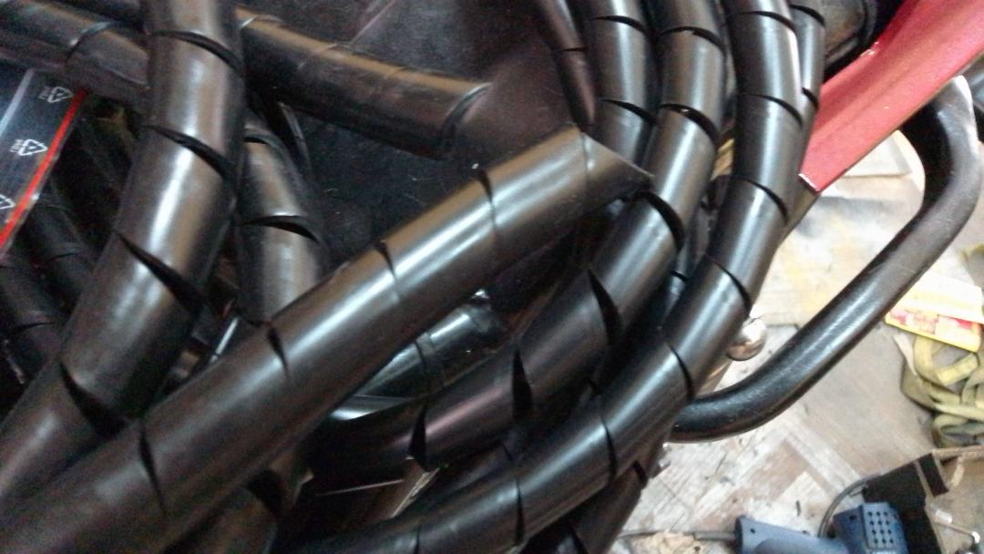 I went to an electrical supply store and bought a few meters of spiral cable sleeving of different thicknesses.