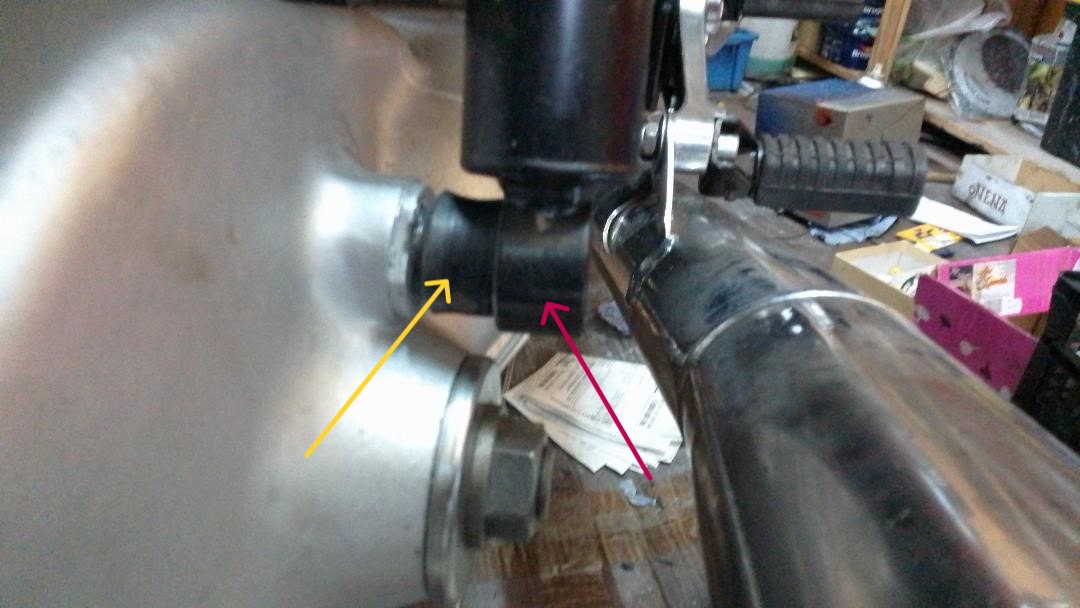 Regarding soft suspensions like a jelly dessert, I think it will help solve part of the problem if I put the eye of the shock absorber back in its silent block, installing a washer will help me keep it in place.