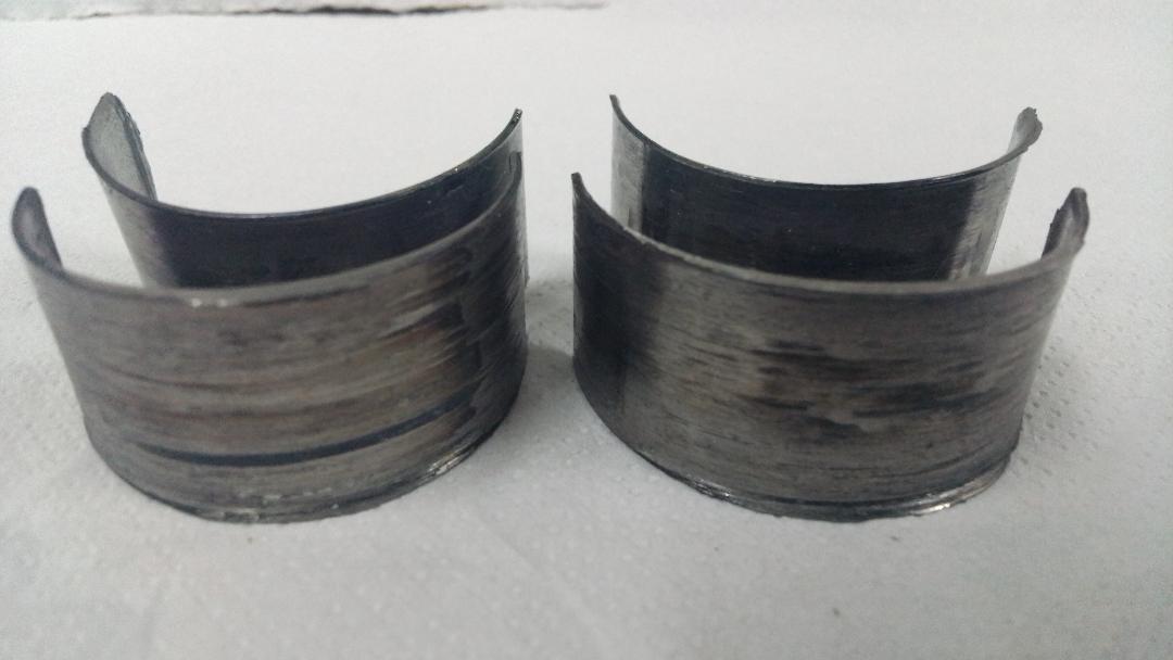 One half of the bearing shells looks really pounded and with only 60 kilometers of running time, suggests to me that oil lubrication was minimal allowing the bearing shell to heat up and deform, then it slipped around to the opposite side of the conrod and laid on top of the other half shell. Pure speculation here, since I've never seen anything like it before.