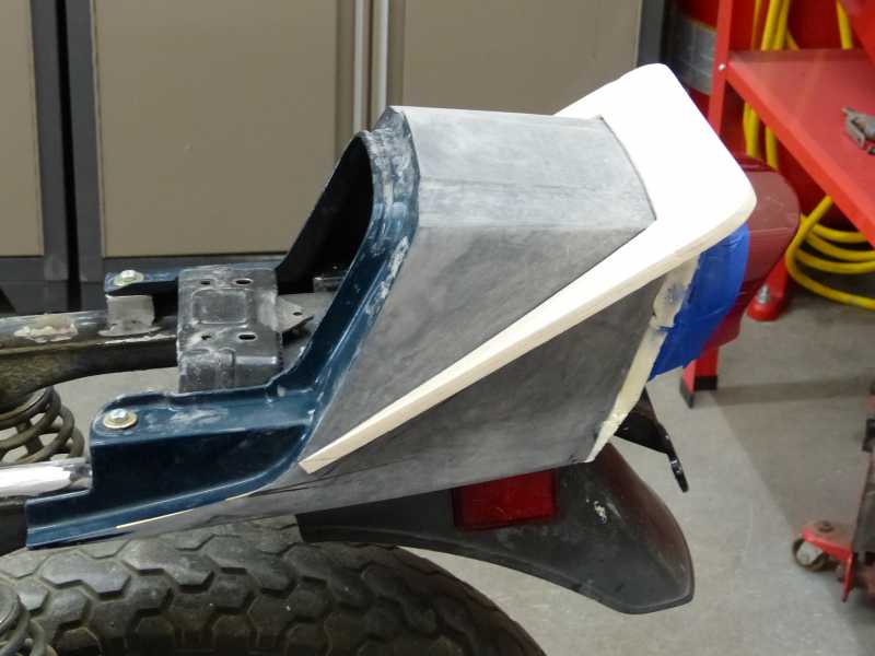 to answer your question, most of the faring on the tail piece is done. I'm quite happy with the build out. I can literally sit on the tailpiece and it's as sturdy as a rock. (I weigh 270 lbs.) At the suggestion of Trikebldr, one of our former members, I put a floor in the tailpiece and removed the tool box. The tailpiece is now probably twice the capacity of the toolbox and the box is sealed so nothing will fall out of any of the openings at the bottom. Another couple of hours of work and it will be ready for paint.