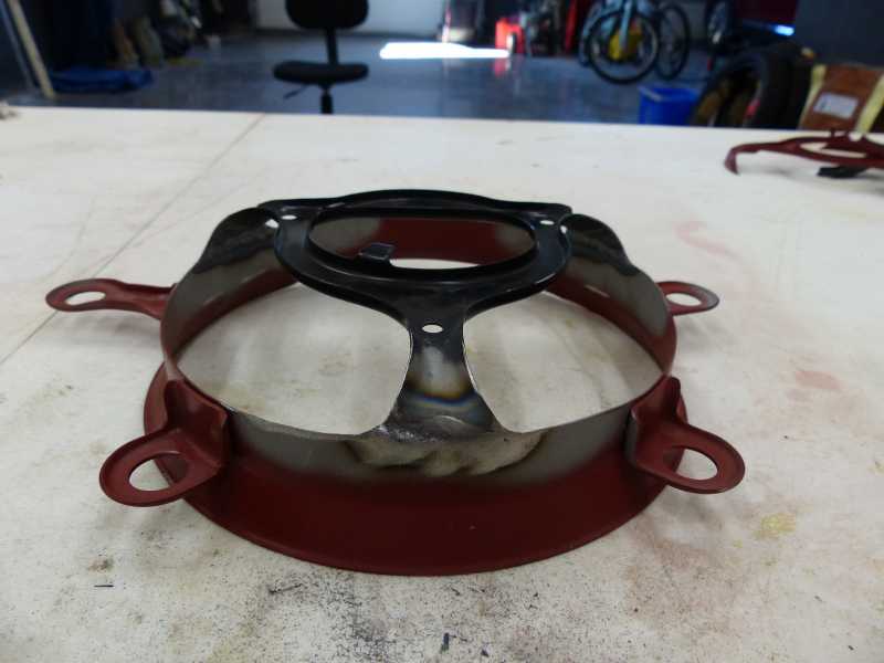 3 hours of work on the fan and it's complete and ready to install. Cut the back half off of the two shrouds and installed the KRX 1200 shroud back half on to the front half of the KZ1300 shroud. TIG welded the pieces together with my new Thermal Arc 186 using pulse tig at 32 amps high current and 20 amps low current. The shroud housings are 32 gauge sheetmetal (.038")and I chose to do butt weld joints. Really happy with the machine. I was a welder by trade 30 years ago and I chose to do this particular mod just as a challenge for myself.