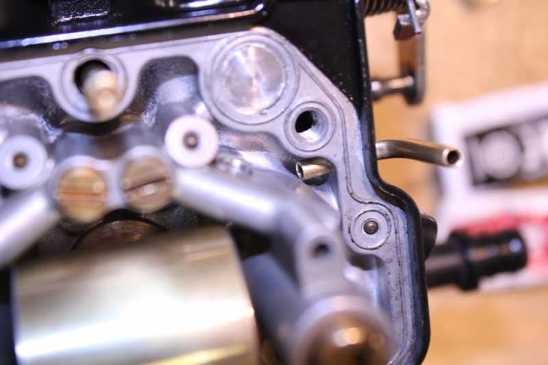 There are some obvious differences between my design and typical overflow tubes. Whereas the standard location for an over-flow is the center of a float-bowl, the single float location and unique bowl design of the Mikuni BSW32's forced an alternative location.