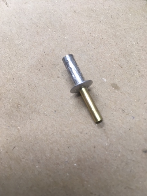 3/16" X 1/2" aluminum Pop-Rivet swedged with a 1/8" pin-punch with a piece of 1/8" brass tube pressed into it. A die is run-down the rivet to displace some material for a snug fit into the air-port. Not much more then scoring the rivet - Not looking for, nor want a full-thread depth !