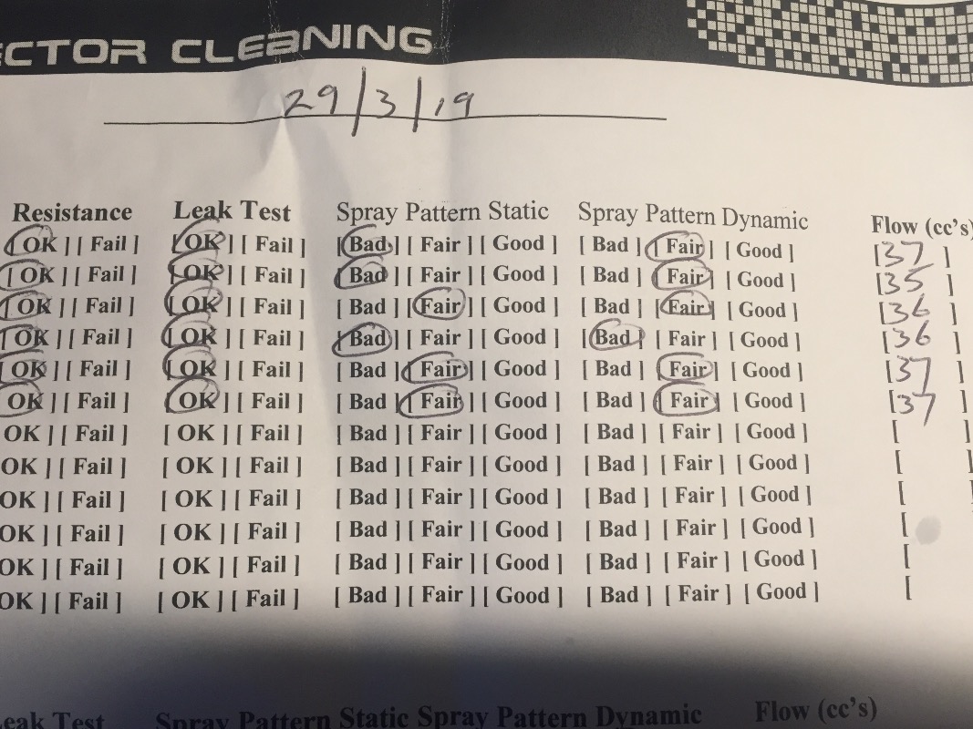 patterns were fair or bad with reduced flow, the post cleaning shows a definite improvement, need to get them back in and the bike up and running to really see what improvement has been gained.