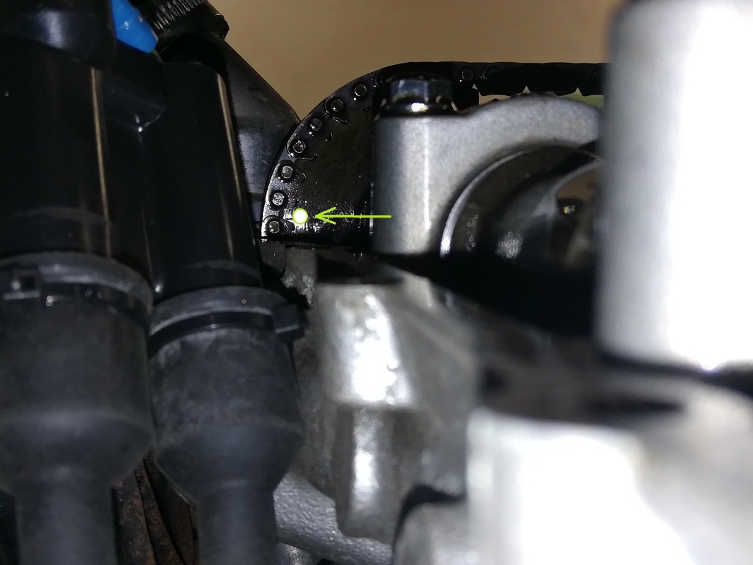 Exhaust cam from the left. This is where the dot is on the other side, to me looks to retarded.