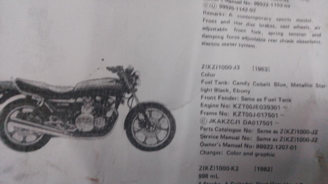 The chassis numbering corresponds to the model KZ1000 J. '82.