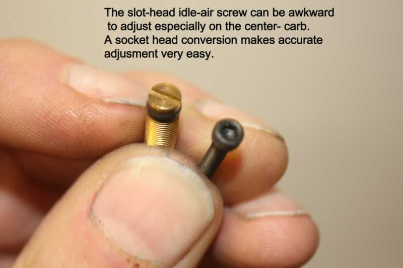 The advantage of the socket-head conversion will become obvious the first time you need to make an adjustment - especially on the Center Carb ! Magnetizing the Ball-End driver will keep the Pilot-Screw on the driver. Care should be taken as the "attraction" is minimal and a "bump" will knock it off and you don't want to drop the Pilot-needle because the odds of it landing on the Tip and ruining it are ......pretty good !