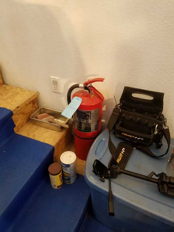 Last but not least, check all 3 of my fire extinguishers and ensure they are ready to go and remind myself what I have to do to use the extinguisher if necessary. I have 3 and they all have a diferent securing pin arrangement.