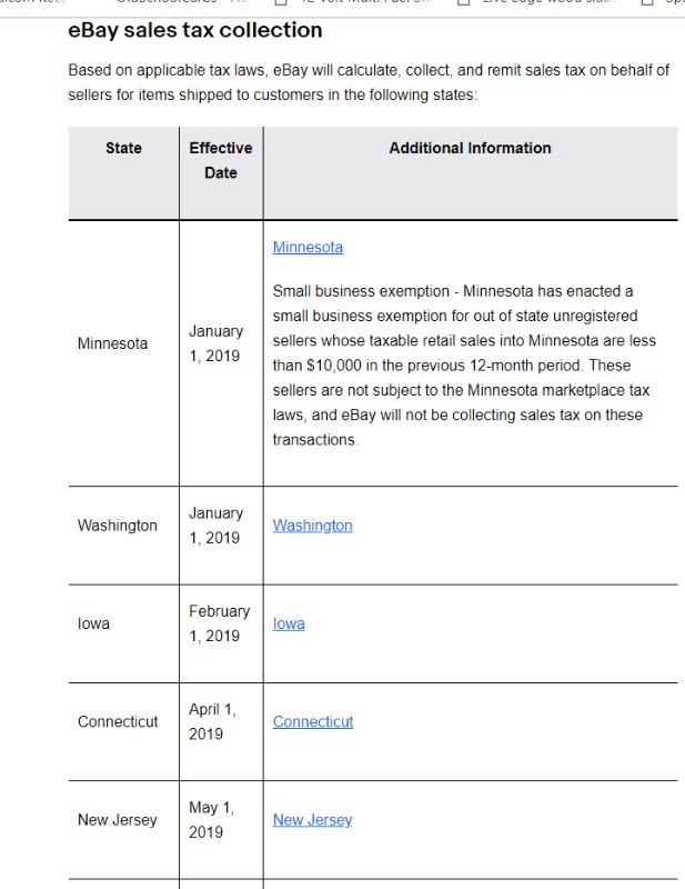 Jan. 01/19 - Ebay IS collecting taxes now in Washington