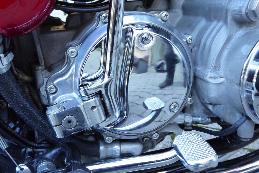 Apparently Honda retro fitted a sheet metal chain guide around the drive sprocket to early bikes that was supposed to encourage a broken chain to exit the case without any damage but according to owners it actually made it worse as the chain wrapped around the guide and caused even more mayhem