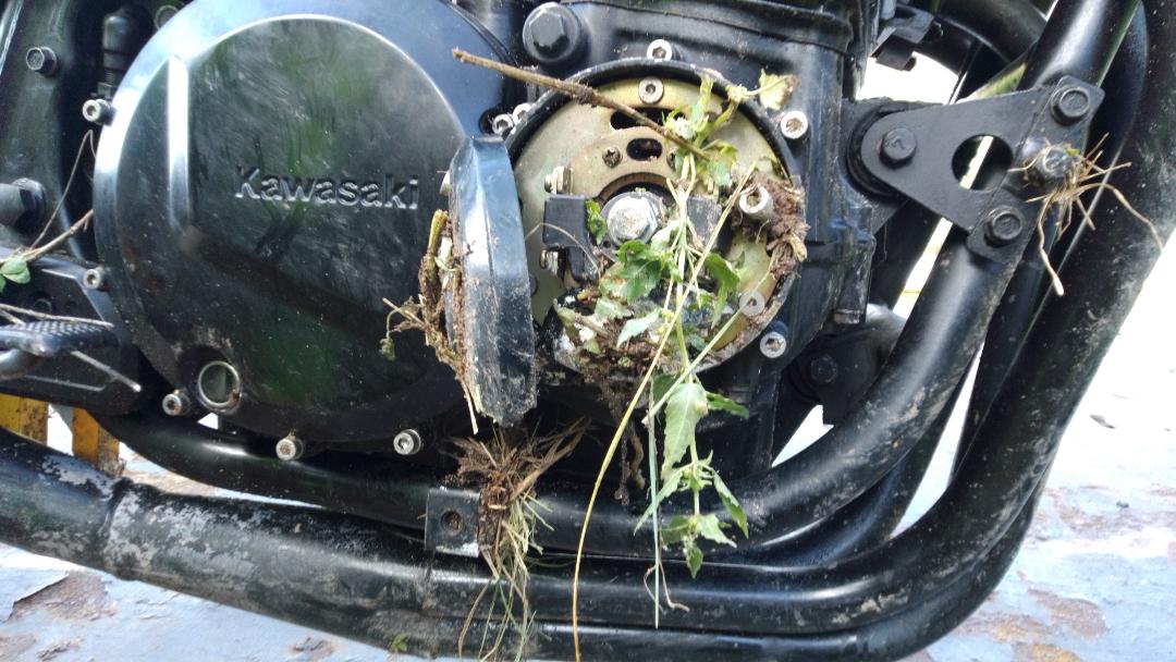 The bike stopped when I maneuvered, when I pressed the starter button it barely turned the engine slowly, as if there was no battery charge, I had done it a couple of times some time ago but it ended up starting without any more problems.