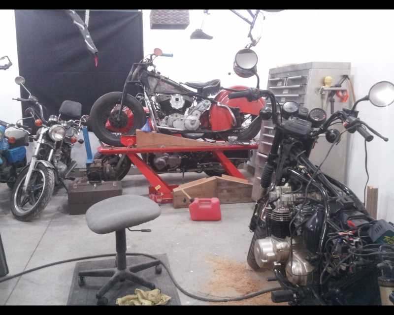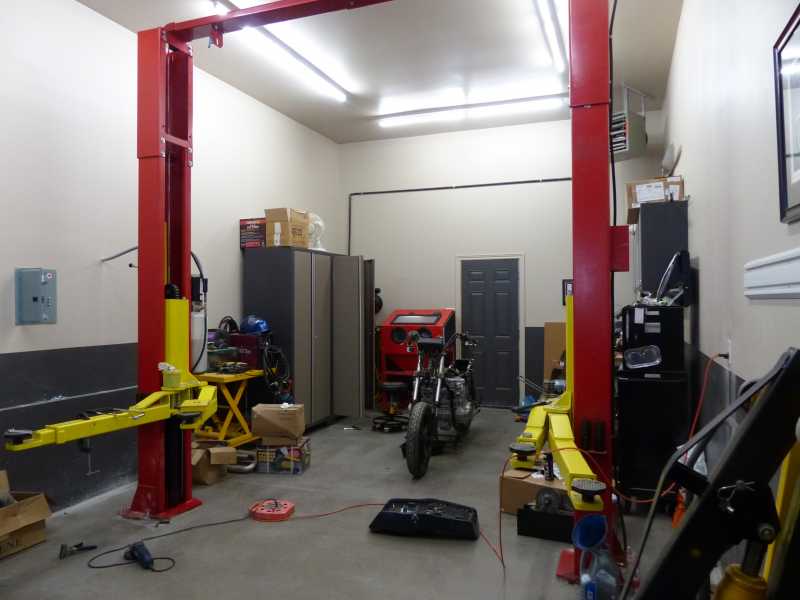I moved back in April 2014 to a new house and had to set up all over again. Took the house with an unfinished 1300 sq. ft. garage and then wired, insulated, dry walled, taped, painted, rented a swing type diamond floor polisher and polished the floors, Lamped it with t5 fluorescents, installed New Age cabinets, erected the 12000 lb. hoist and then moved everything in to the garage. I had a Kawasaki H2 for riding, a Kawasaki h1 for restoration and 2 1976 Mercury Sno-twisters for restoration plus my 1985 Porsche928 which is almost finished (it's at the paint shop) I decided that I needed to get focused on one or two projects so I became a Kijiji king and sold the H2, the H1, and the Sno-twisters plus a 20ft enclosed trailer in one week.