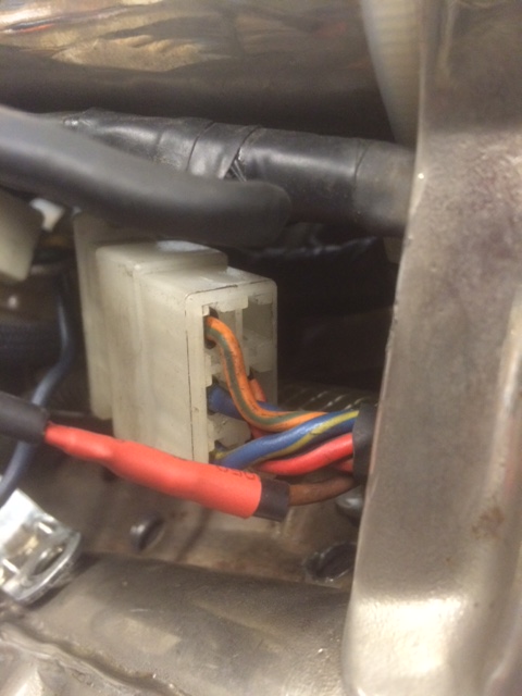 Under the tank are two plugs. A "6-pin" orange/brown/blue/BLUE-yellow/RED-yellow RED-black. This connects to switches #1, #2 and #3 in the wiring scematic for an '80/Canadian/U.S.