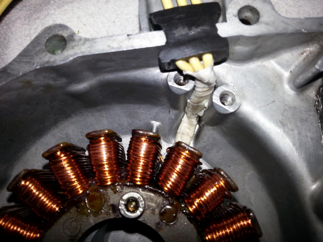Above, picture is showing green protective paint layer so wire insulation won't get cut through on sharp stator edges. PROPER JOB.