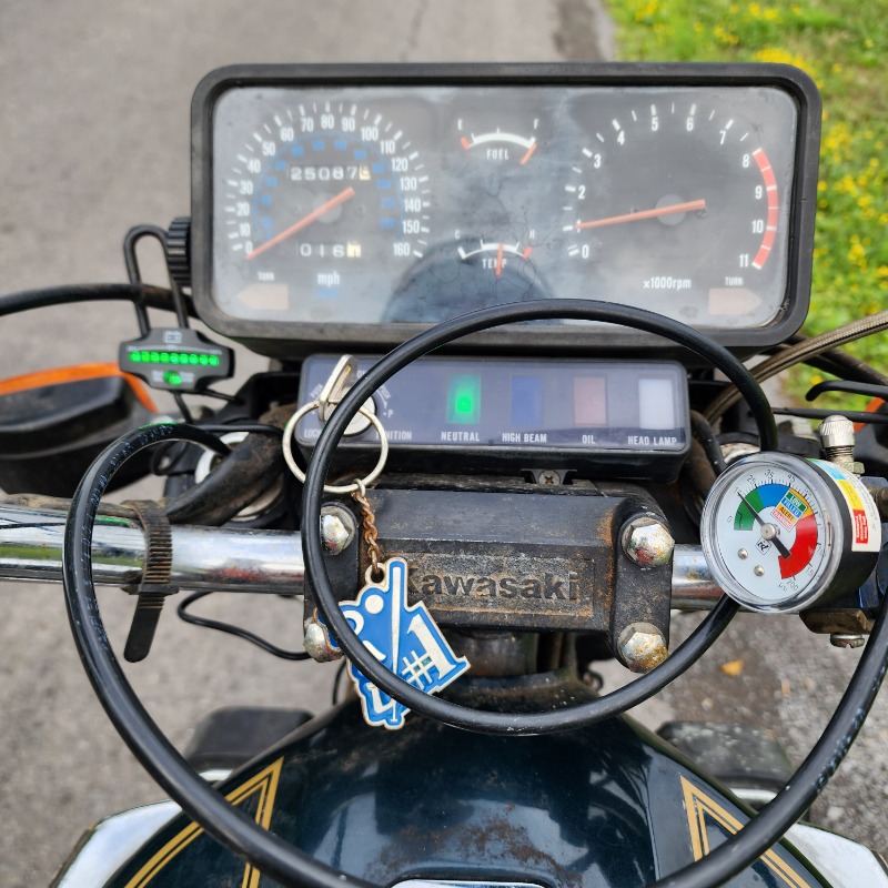 Each bike has air fork gauge, battery monitor, headlight byPass Switch, A ccell could, Vacuum petcock,can chain tensioner upgrade.I initially got into the KZ1300 AFTER my Dad and two of his buddies bought one new in 1979.