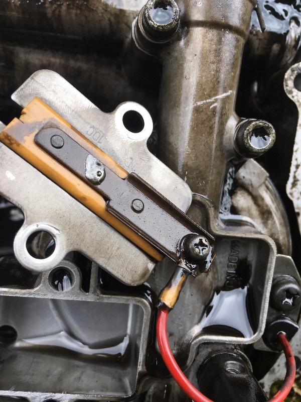 Gavin; the deed is done already, I did try to take the pickup off; but the centre stand was in the way of one of the JIS screws. With the bike off centre stand my No.3 was too long, so I decided to let it be. Internals were really clean just the sump was dirty.