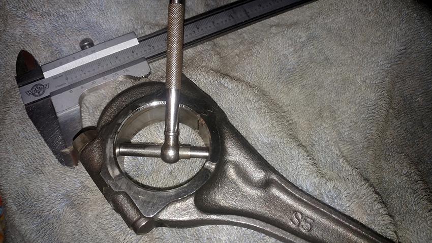 I took another measurement with an inner diameter measuring tool, so it's more precise. . Also, this time I tightened the bolt and the nut with a wrench tight (but not the required final torque) The big end comes up being