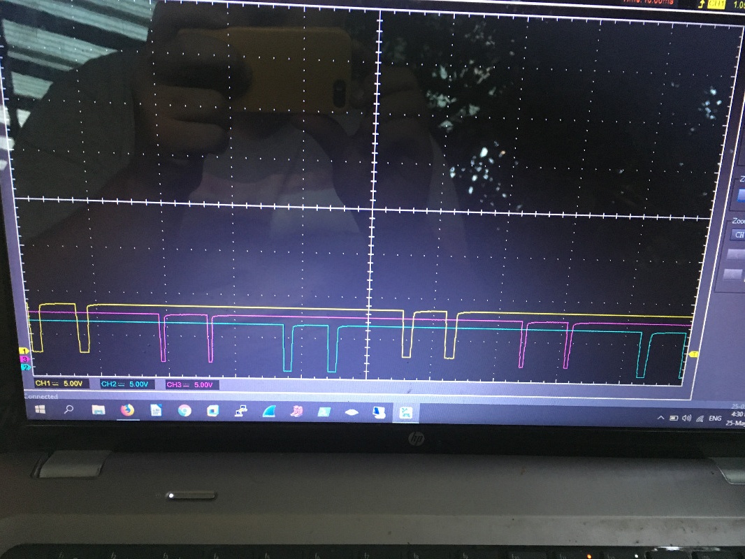 Sitting for two weeks she wouldn't start, let me get a good look at the pulse signals at idle.