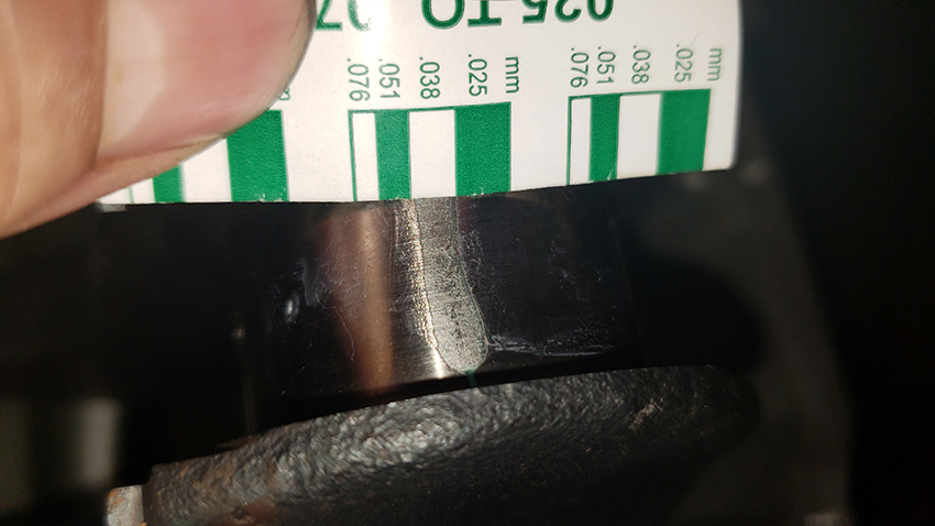 Next - used plastigauge to check the clearances. I think this is the best direct method to see what is happening. In my case, the clearances were 0.038 mm in all except one, which was about 0.043 mm in my estimate (stator side).