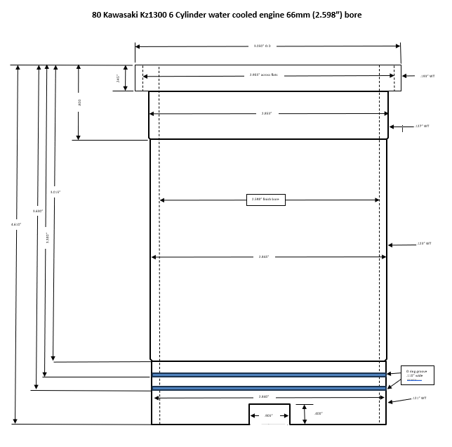 Thank you, attached is a diagram of two standard bores the bit to look at is the milled flat edge dead centre to the bores leaving 1.785mm from the wall to the milled flat, 66mm measures 1.55mm, 69mm breaks into the wall leaving about 0.650mm?? with a 2.5mm off set. I will play around a bit more over the weekend.
