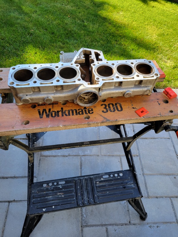 Cylinder block on the Workmate with all the sleeves installed. Took less than 2 minutes to install the sleeves.